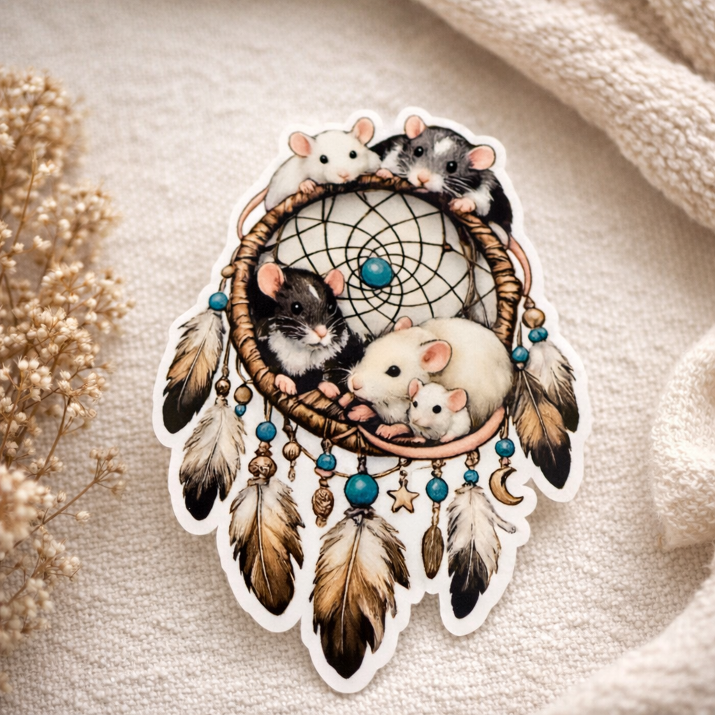 Suloinen vinyylitarra, jossa kesyrotat kurkistelevat kauniin unisiepparin sisällä.